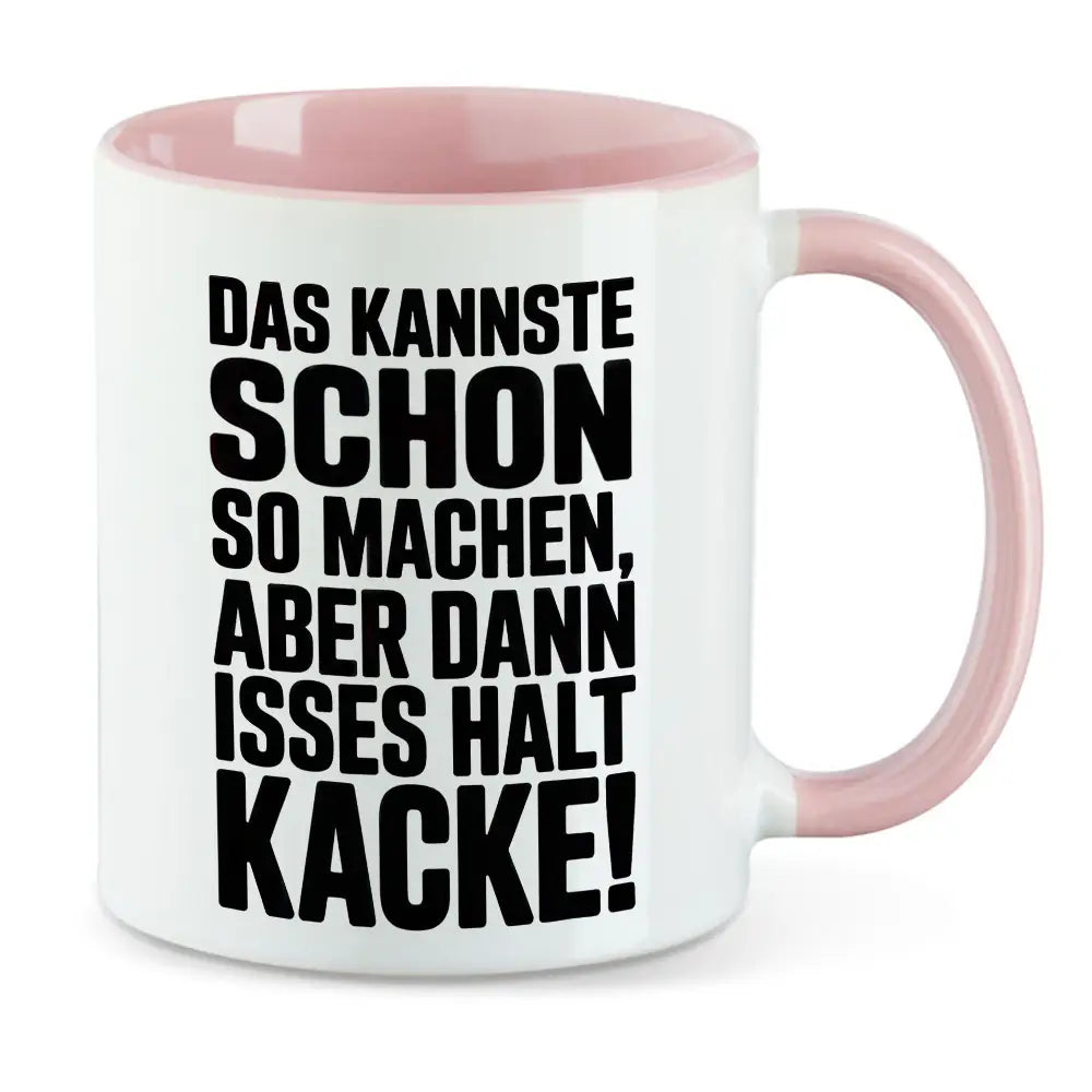 Für alle, die Klartext sprechen und keine Zeit für halbgare Lösungen haben: Diese freche Tasse mit dem Spruch „Das kannste schon so machen, aber dann isses halt kacke!“ bringt es auf den Punkt – ehrlich, direkt und mit der nötigen Portion Humor. Ob im Büro, in der Werkstatt, am Esstisch oder als Statement für alle "Schlaumeier" da draußen – dieses Motiv trifft den Nerv der Zeit und sorgt garantiert für Lacher (oder betretenes Schweigen 😉).